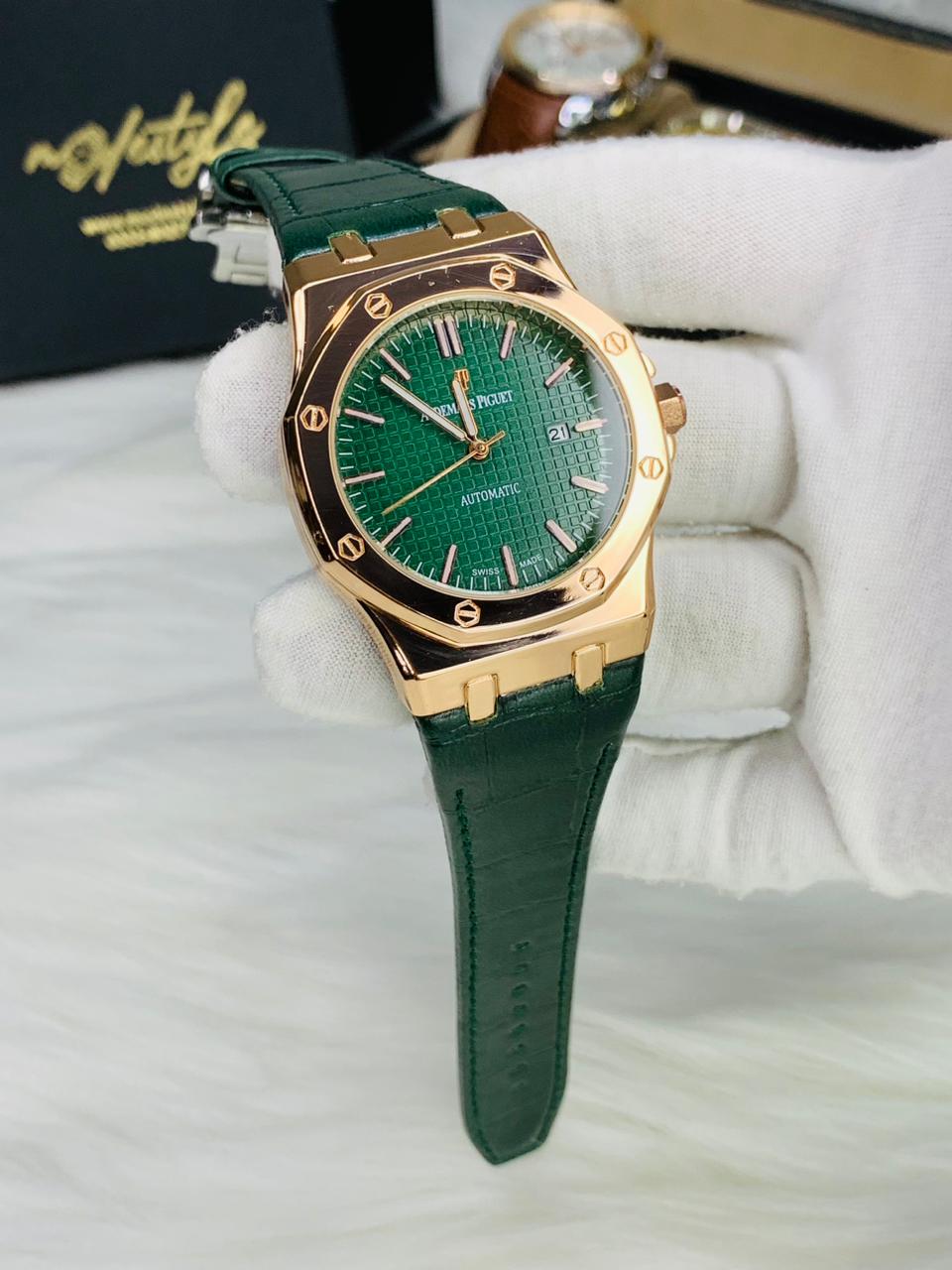 AP Royal Oak Self Winding – Premium Leather Straps (Green belt green dail)