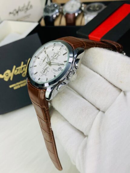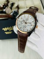 Branded Chronograph Working Watch (Brown belt white dail copper case)