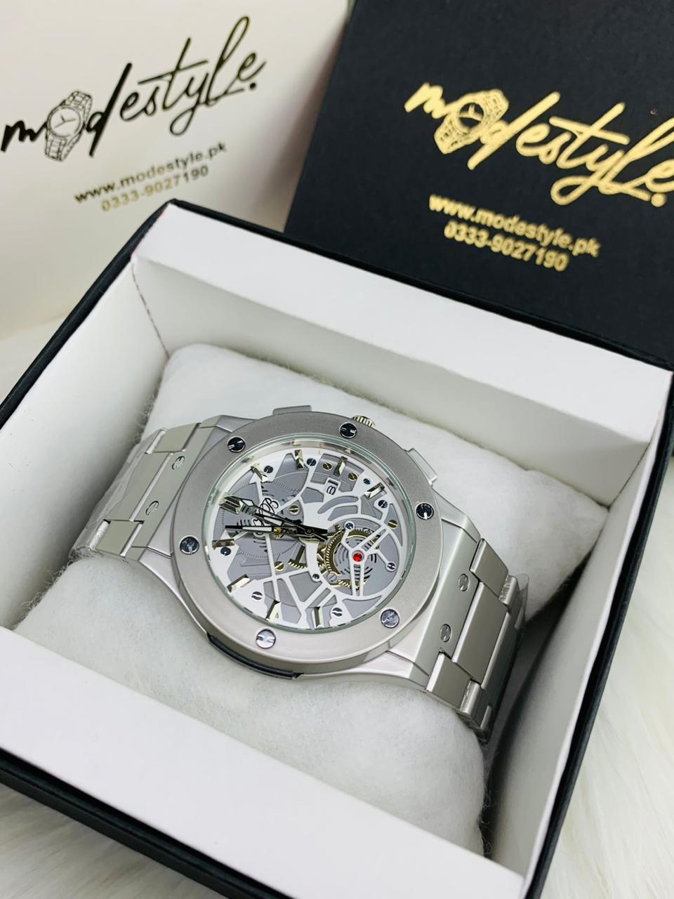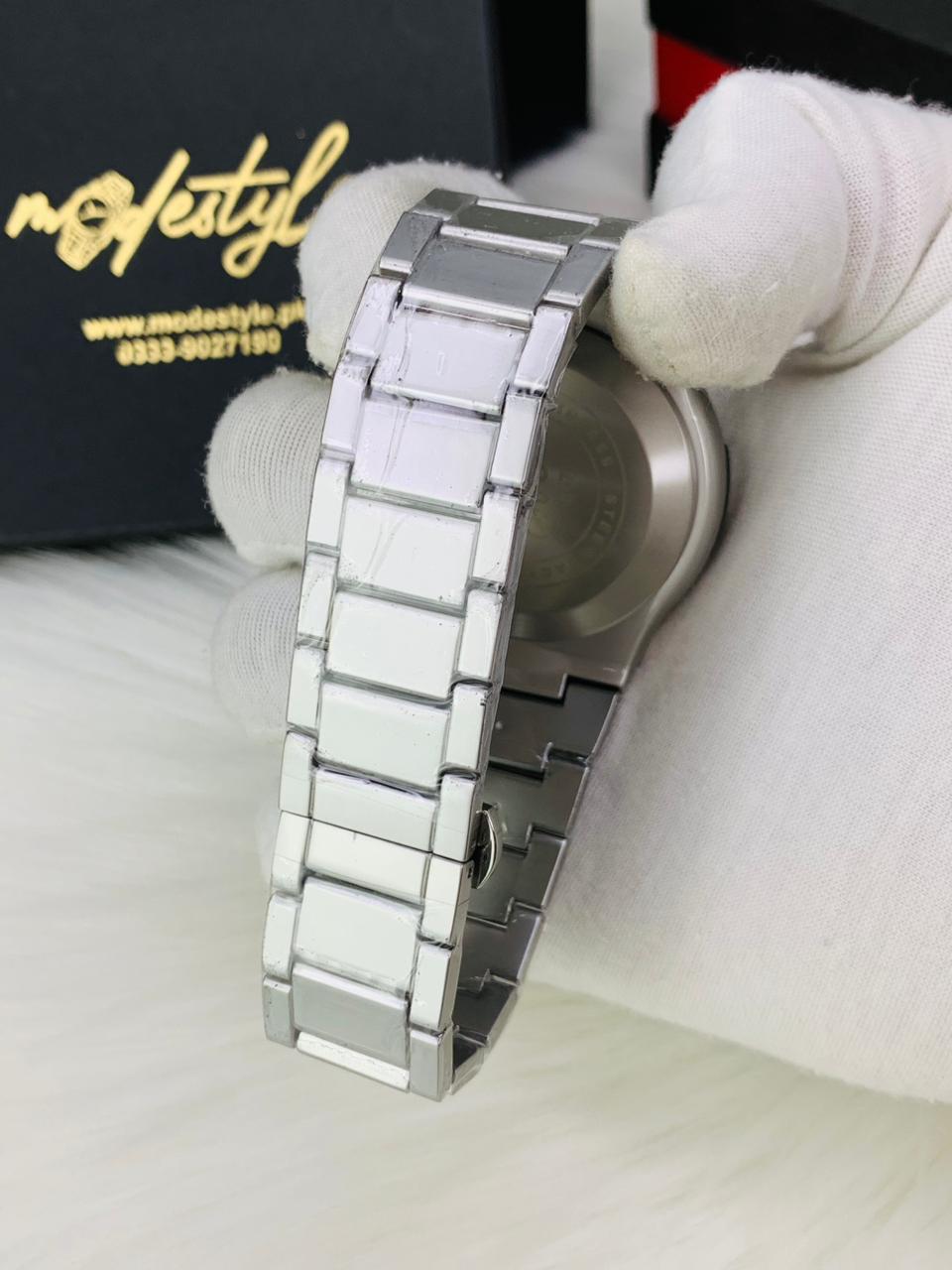 Tag Day and Date Watch is a premium timepiece featuring a sleek design with a clear day and date display.