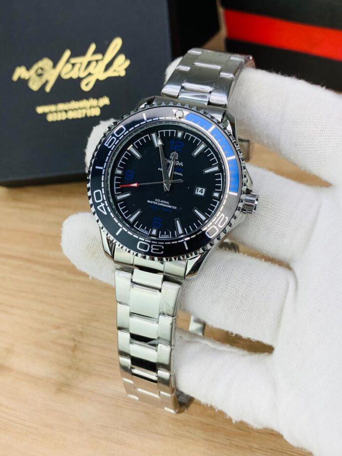 Omega Seamaster Model (Black Dail Black Green case) ₨ 5,000 Original price was: ₨ 5,000.₨ 4,000Current price is: ₨ 4,000.