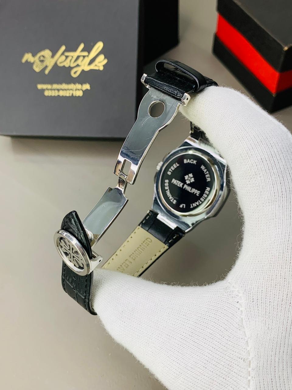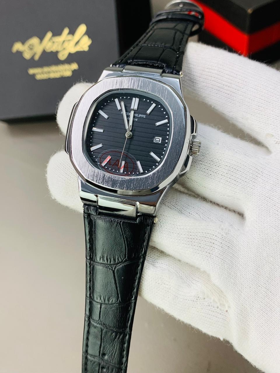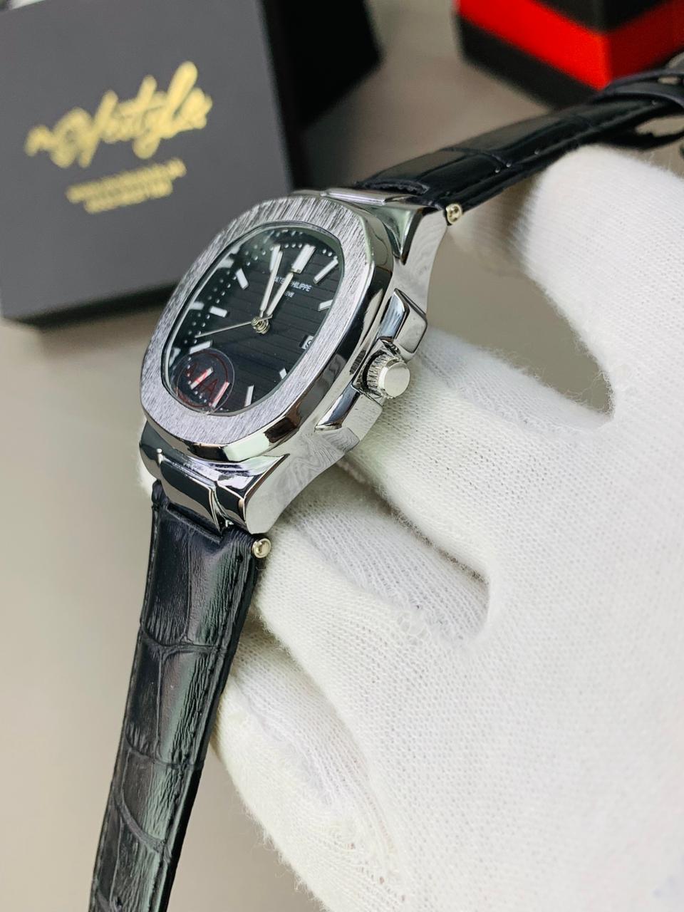 Home Men Watches Pp nautilus belt Swiss movement (Silver black)