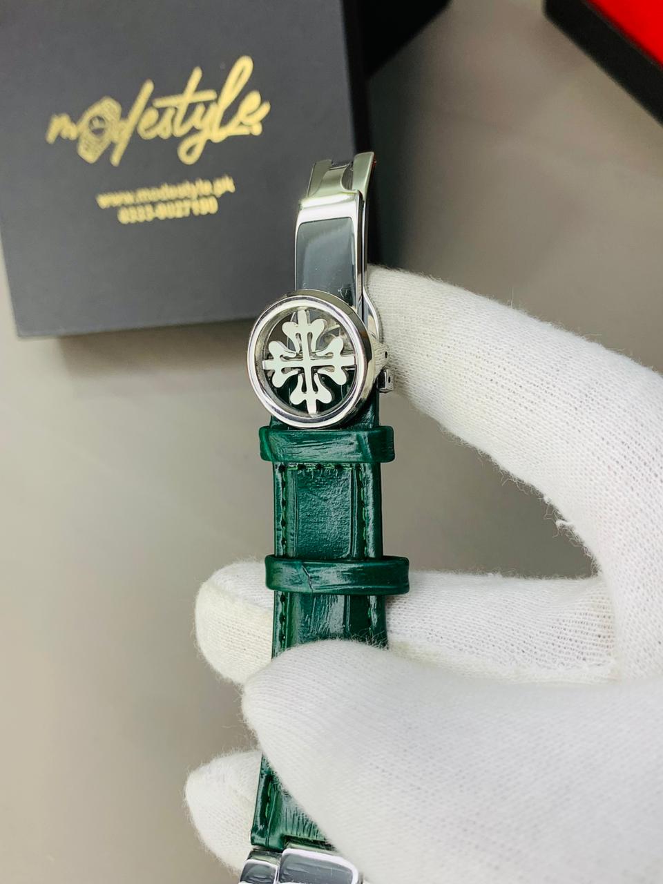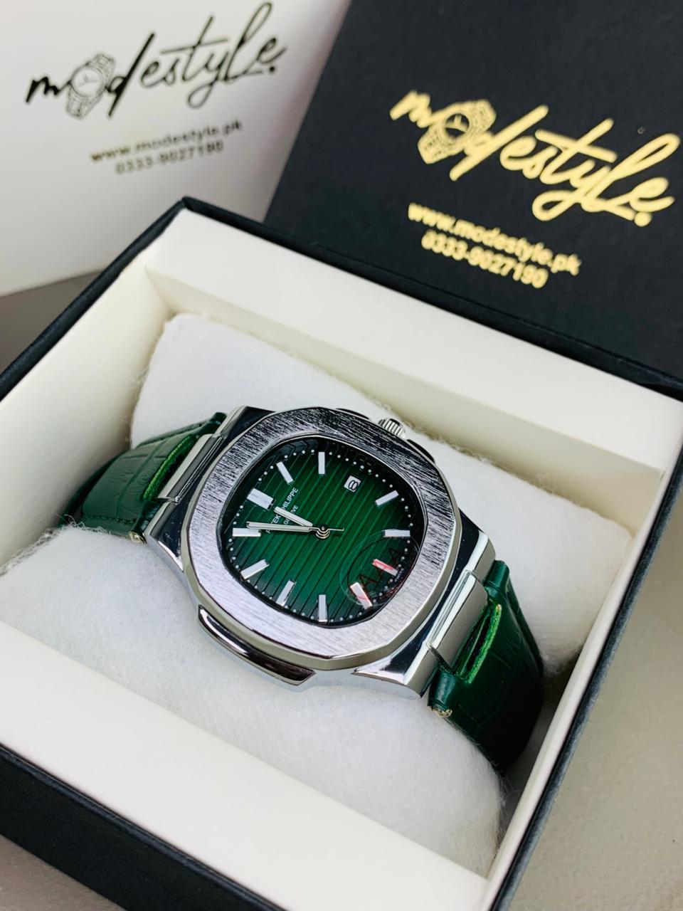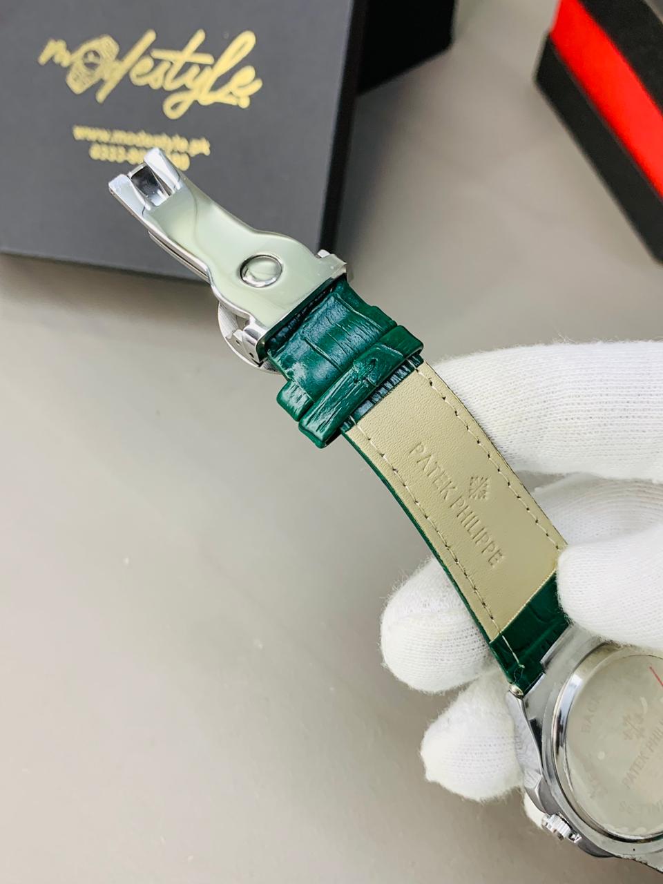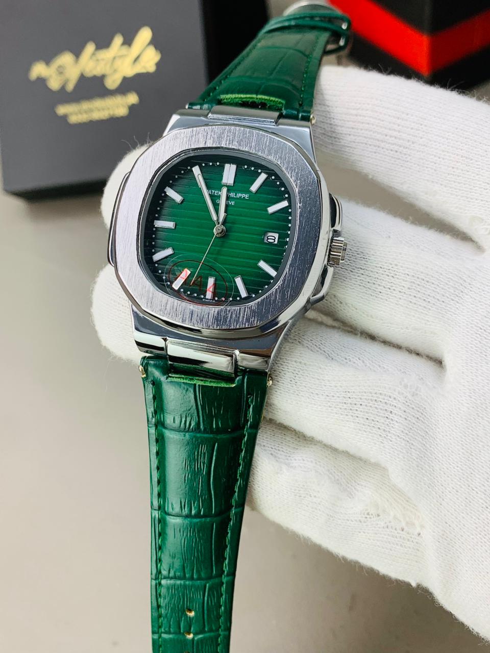 Pp nautilus belt Swiss movement (Silver Green)